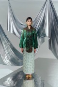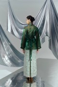 Shimmering organza top paired with batik skirt.