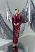 Shimmering organza top paired with batik skirt.